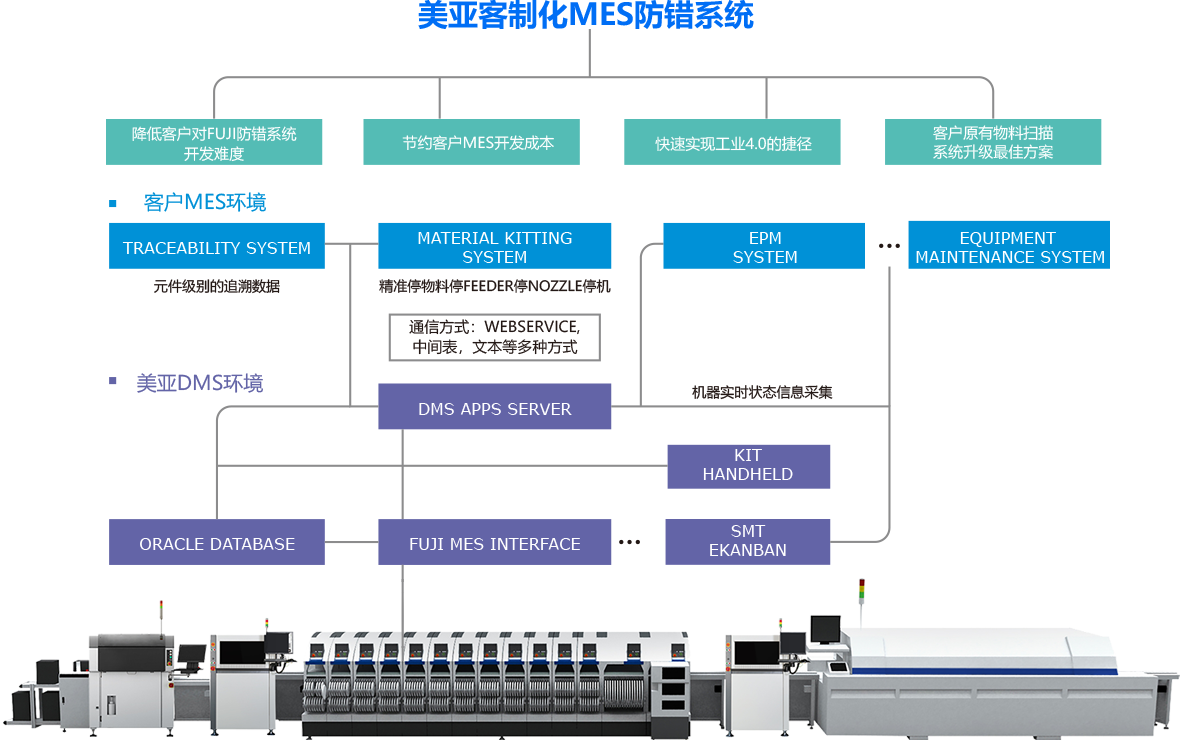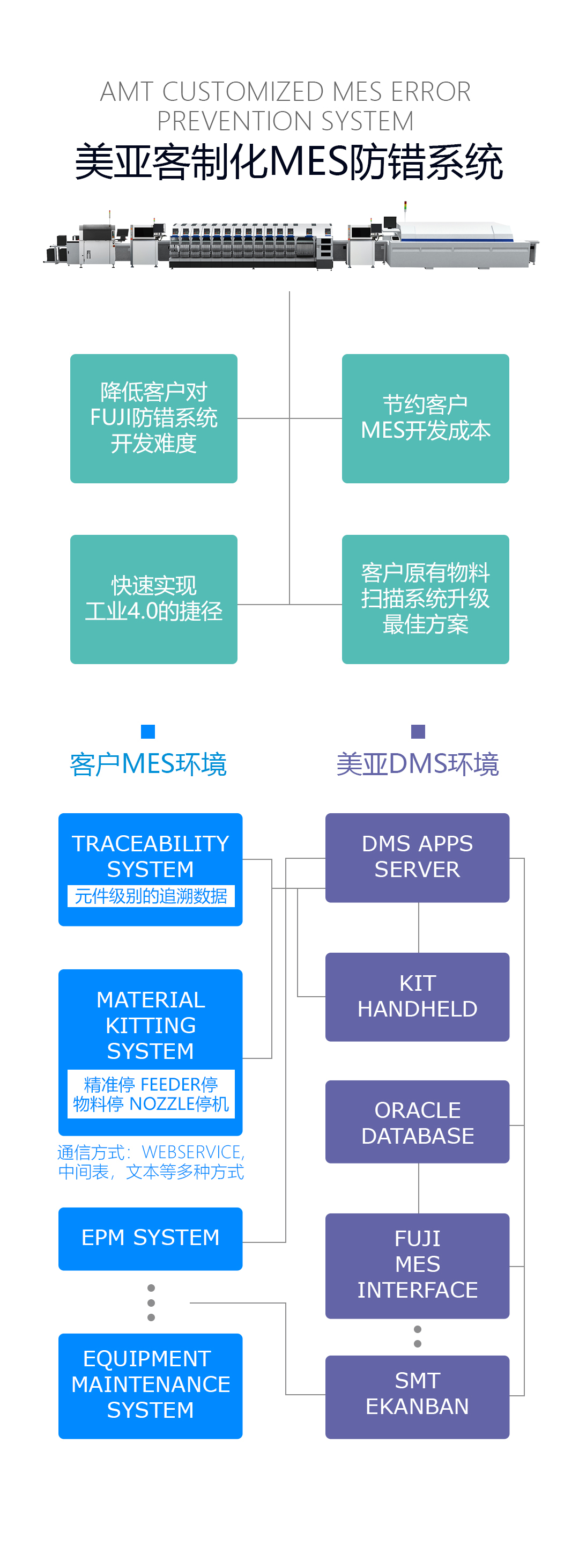 FUJI的機器很先進,它的接口開發需要開發者有很專業的FUJI設備(bèi)經驗,爲加快客戶的工業4.0的實施進度,美亞根據自己實力應勢推出客制化MES防錯(cuò)系統。